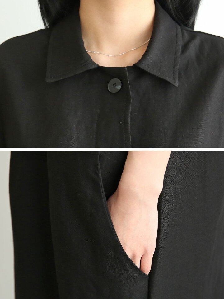 ハーフスリーブシャツワンピースは、サラッとした質感でありながらしっかりとした印象のシャツワンピースです。襟元のラペルや前ボタンがアクセントになり、カジュアルからきれいめスタイルまで幅広く着こなせます。