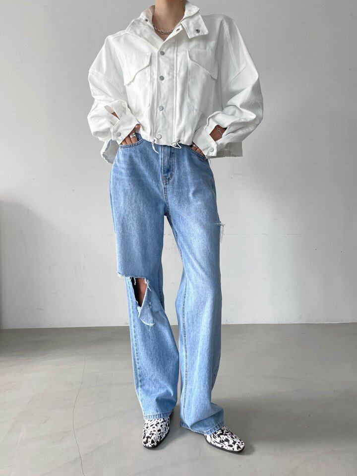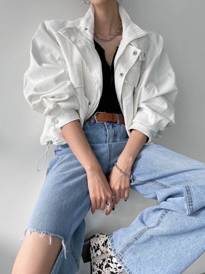 シャープな印象を与えるドロストショートジャケットが登場しました。しっかりとした生地感で、どんなコーディネートにもクールなアクセントをプラスしてくれます。さらに、裾に施されたドロスト仕様が、遊び心を演出。カジュアルなスタイルにも、ちょっとしたお出かけにもピッタリな一着です。